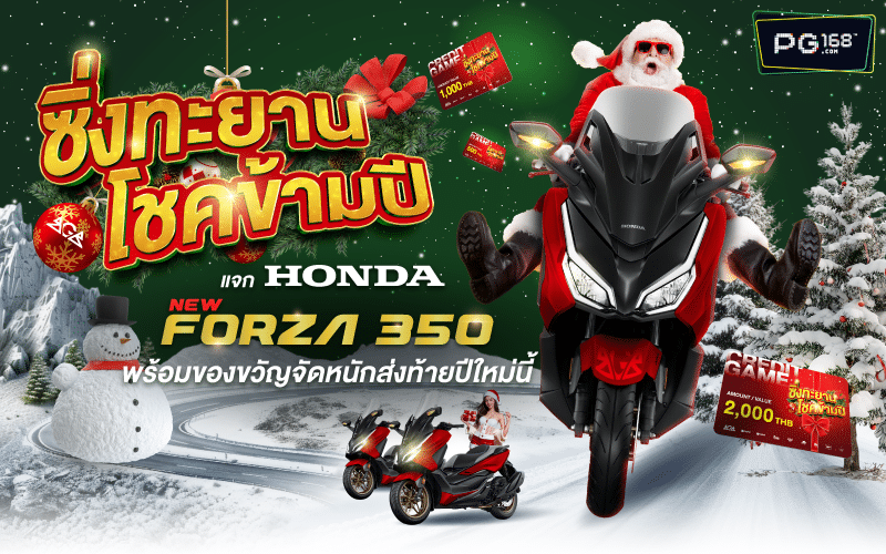 เตรียม ซิ่งทะยานโชคข้ามปี พร้อมเข้าสู่ศักราชใหม่อย่างเหนือระดับ กับการกลับมาอีกครั้งของมหกรรมแจกรางวัลสุดยิ่งใหญ่ส่งท้ายปี 2024 พบกับรางวัลสุดพิเศษ Honda Forza 350 สุดหรู 3 รางวัล มูลค่ารวมกว่า 567,000 บาท พร้อมเครดิตฟรีอีกมากมาย รวมมูลค่าทั้งกว่า 600,000 บาท เปิดรับสิทธิ์ได้ตั้งแต่วันที่ 11-24 ธันวาคมนี้ แน่นอนว่าดีลพิเศษเฉพาะเว็บสล็อต คาสิโน หวย และแทงบอลออนไลน์ในเครือ BGB Casino ทั้ง 8 เว็บ ได้แก่ Betflik168, PIGSPIN & PIGBET, HungryPussy888, 918KissME, PG168, 116Lotto และ UFABET888 พร้อมประกาศผู้โชคดีในวันคริสต์มาส 25 ธันวาคมนี้ที่เดิม