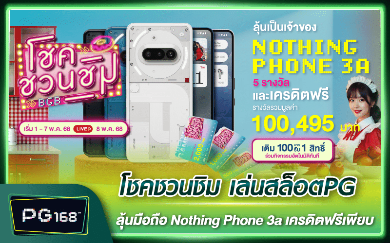 เตรียมตัวให้พร้อมต้อนรับเดือนใหม่ กับแคมเปญสุดพิเศษ โชคชวนชิม ที่ PG168 ได้จับมือร่วมกันกับผู้สนับสนุนอย่างเป็นทางการกับ BGB CASINO มอบโอกาสทองให้กับผู้เล่นสล็อตทุกคนได้ทั้งความสนุก และลุ้นรับของรางวัลสุดพรีเมียม ไม่ว่าจะเป็น Nothing Phone 3a พร้อมเครดิตฟรีแจกกระหน่ำ รวมมูลค่ากว่า 100,495 บาท ตลอดช่วงเวลาตั้งแต่วันที่ 1 – 7 พฤษภาคมนี้เท่านั้น โดยเว็บไซต์ที่ร่วมรายการได้แก่ PIGSLOT & PIGBET, HungryPussy888, 918KissME, Bfk168, 116Lotto และ UFABET888 และพบกับกิจกรรม LIVE ประกาศรายชื่อผู้โชคดี ในวันที่ 8 พฤษภาคม ห้ามพลาดเด็ดขาด